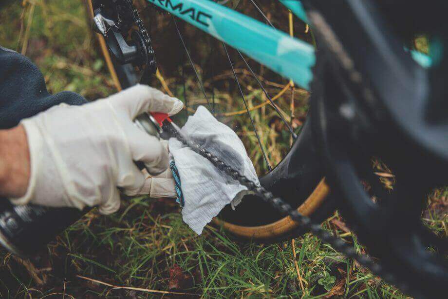 Khi tra dầu mới cho nhông sên, bạn cần thực hiện thao tác xả cặn bẩn. Hãy sử dụng giẻ lau hoặc chất tẩy rửa sên chuyên dụng để có thể làm sạch hoàn toàn nhông sên, bánh sên và bánh xe đua.